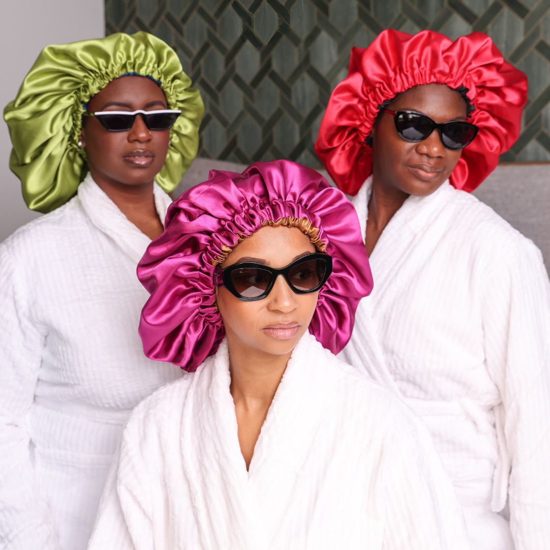 Our reversible satin bonnets lock in moisture, prevent breakage, and stay put all night—for beauty sleep that truly delivers.
